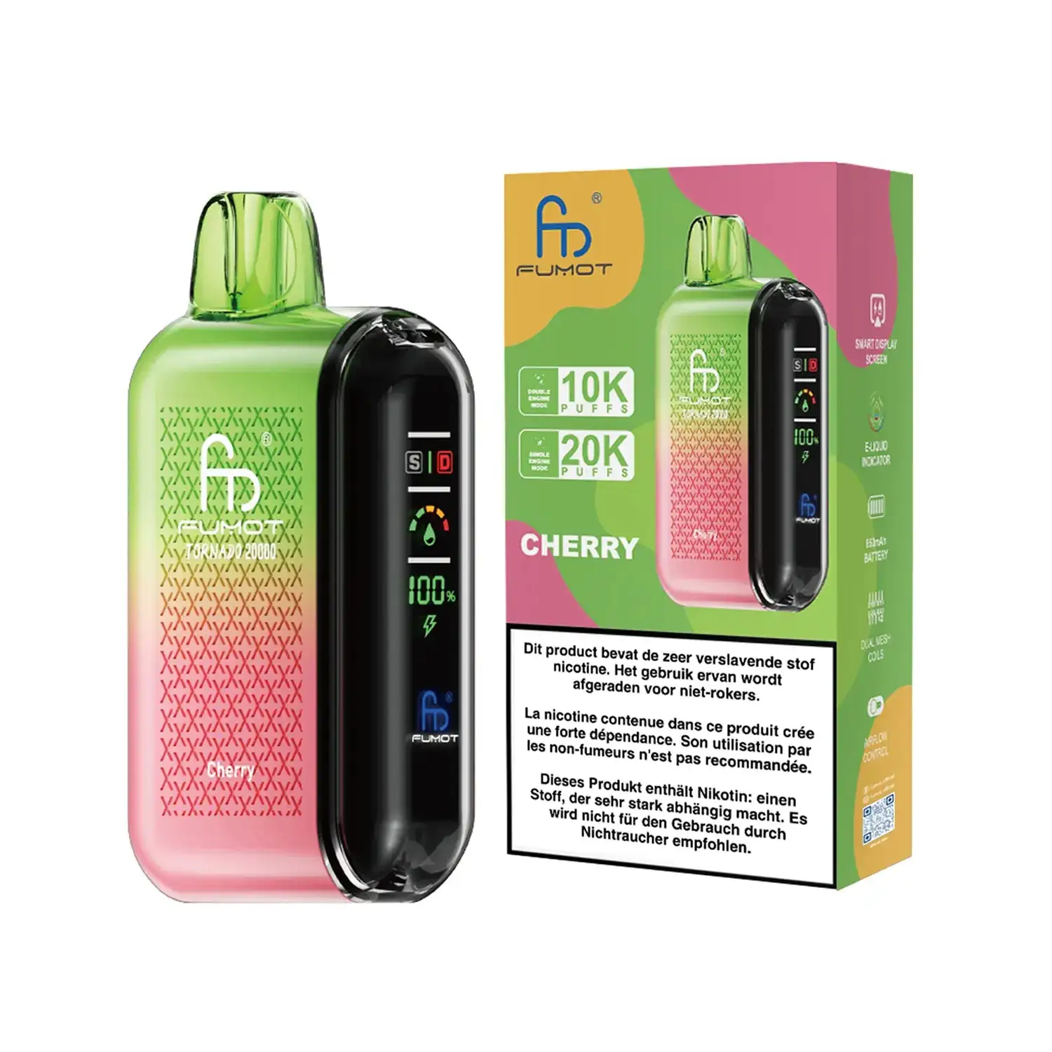 Wähle den Cherry-Geschmack des Fumot Tornado 20000 und lass dieses köstliche Kirscharoma, zusammen mit der praktischen LED-Anzeige, zu deinem perfekten Alltagsbegleiter werden.