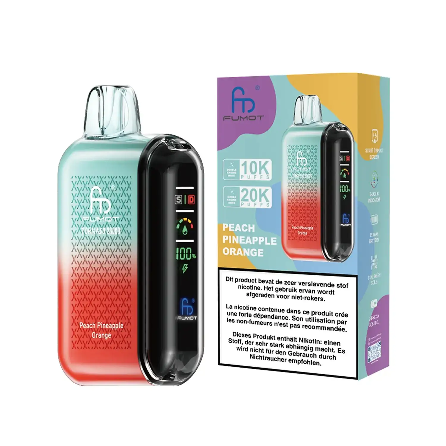 Für alle, die ein hochwertiges Fruchterlebnis suchen und dabei keine Kompromisse bei der Ausdauer eingehen möchten, ist der Peach Pineapple Orange-Geschmack des Fumot Tornado 20000 die perfekte Wahl. Dank unkomplizierter Ladefunktion bleibt die tropische Frische jederzeit verfügbar und begleitet dich durch den Tag. Süße, Säure und Frische verschmelzen zu einem harmonischen Ganzen und schenken dir bei jedem Zug ein unvergleichliches Geschmackserlebnis. Es ist, als würdest du die besten Früchte der Natur genießen – ein Moment purer Freude und eine kleine Belohnung für die schönen Augenblicke im Leben.