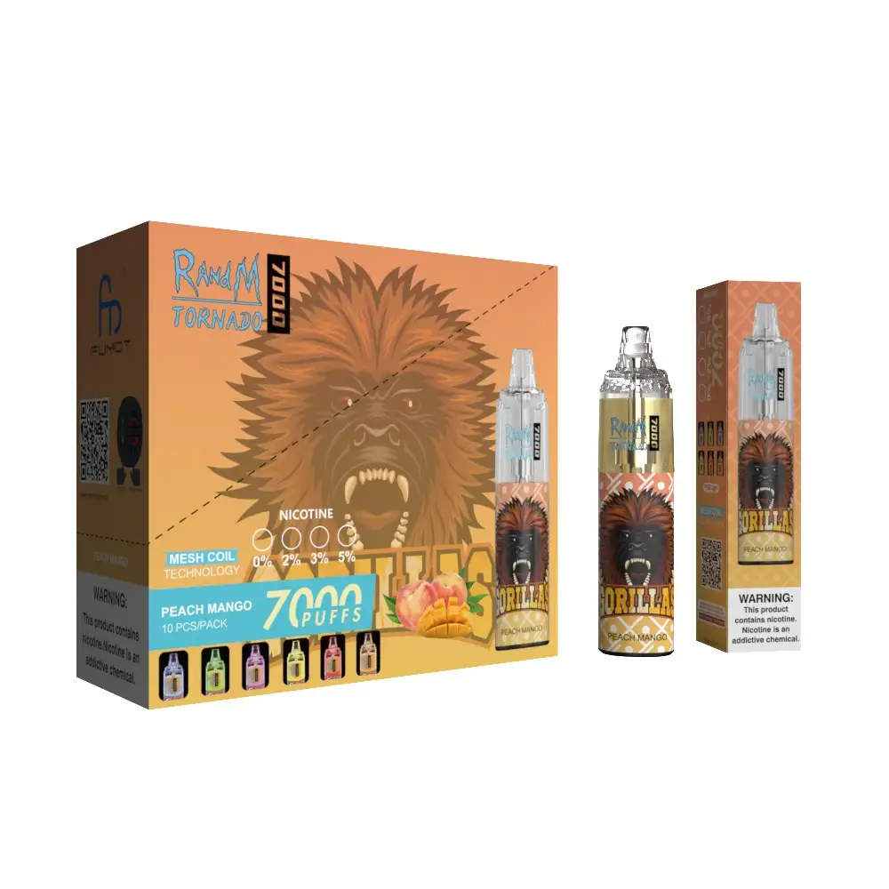 Als eine der exklusiven Geschmacksrichtungen von RandM Tornado 7000 begeistert Peach Mango durch die harmonische Kombination aus fruchtiger Süße und tropischer Frische. Unterstützt durch die RGB-Lichteffekte wird das Dampferlebnis zu einer kreativen und individuellen Erfahrung.