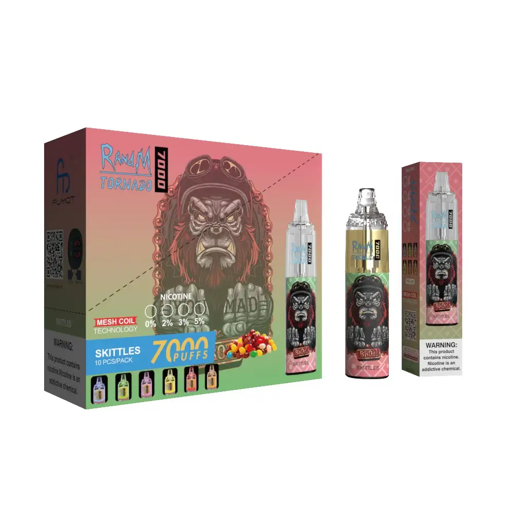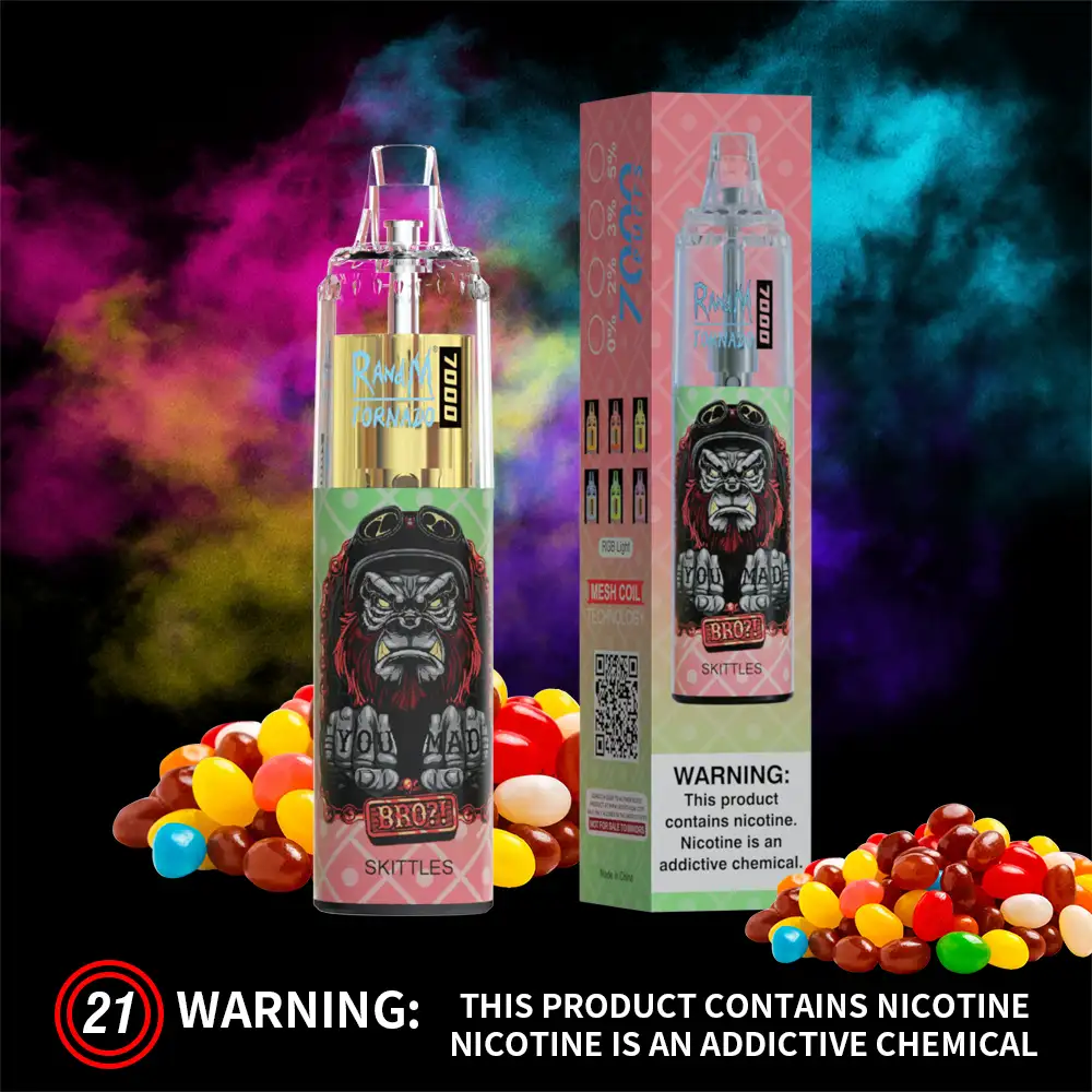 Wenn du dein Leben mit einer süßen und bunten Note bereichern möchtest und gleichzeitig eine langanhaltende, bequeme Nutzung suchst, ist Skittles die ideale Wahl. Lass RandM Tornado 7000 dein täglicher Begleiter sein und genieße mit jedem Zug die lebendige Vielfalt dieser fruchtigen Mischung, die deinem Tag eine Extraportion Freude und Energie verleiht.